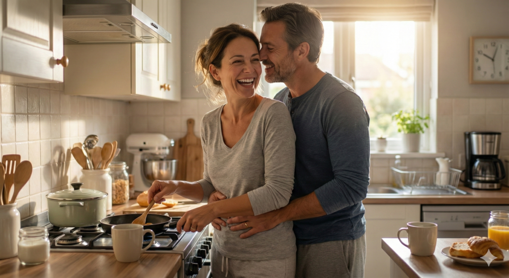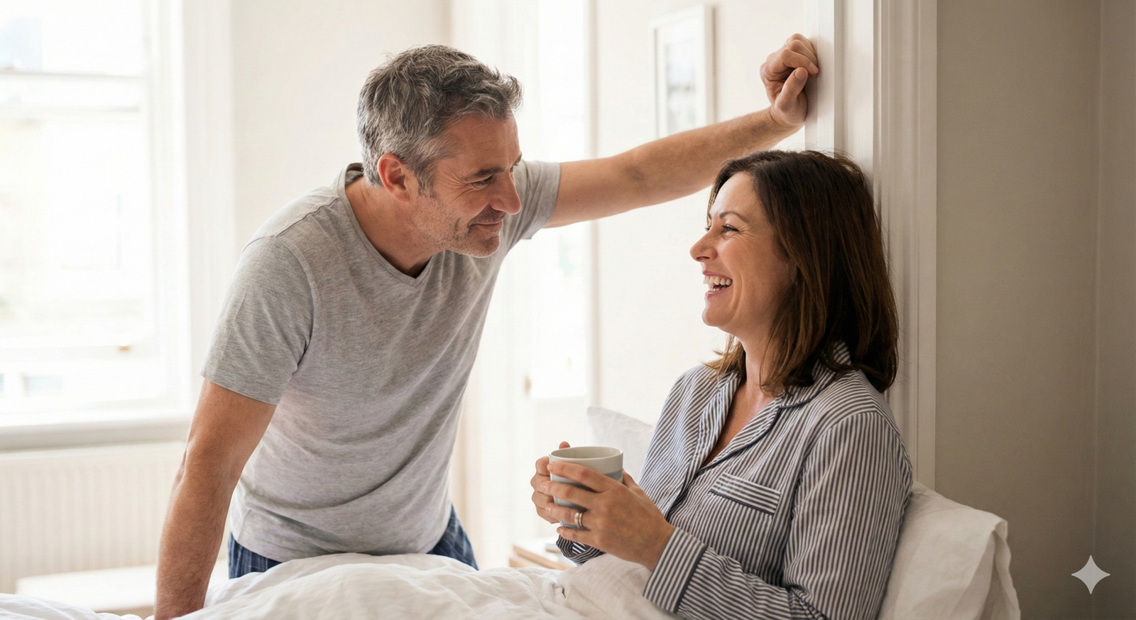 e ter o alívio de não precisar mais 'inventar desculpas' para dormir mais cedo, porque agora o momento a dois deixou de ser uma obrigação e virou a melhor parte do seu dia.